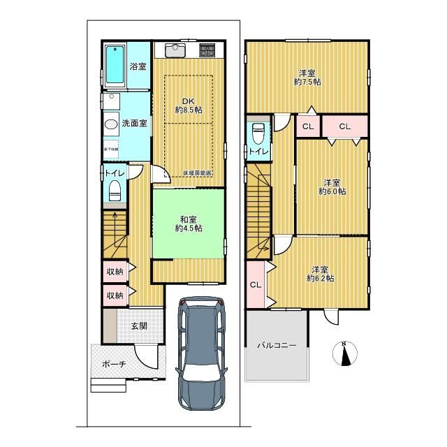 Multiple train lines accessibleSouth-facingSystem kitchenGood sunlight exposureRoad facing southRoad width over 6mJapanese-style roomTwo toiletsTwo storiesSouth-facing balconyHeated toilet seatWindow in bathroomCity gas