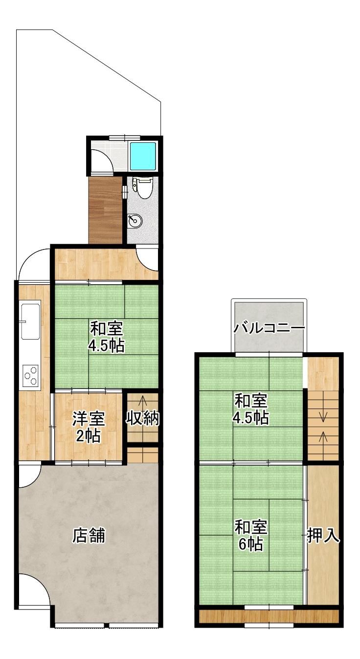 This 3DK detached house, built in 1977, is located just 5 minutes from Komagawa-Nakano Station on the Osaka Metro Tanimachi Line. With a building area of 40.49 sqm and a generous land area of 64.72 sqm, it offers a comfortable living space in a neighborhood close to the city center. The property features good ventilation and easy access to local amenities.
