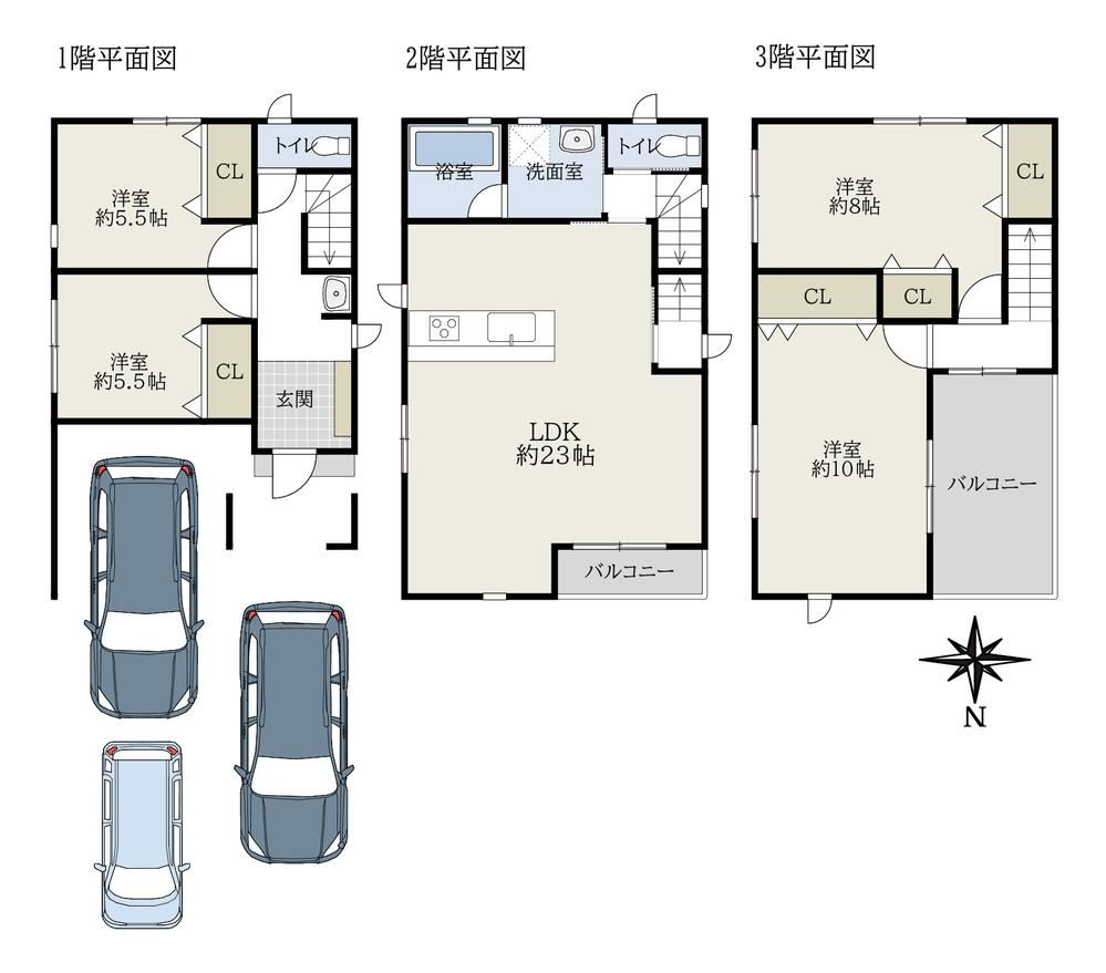Parking for 3 carsQuiet residential areaGardenSystem kitchenTwo toiletsCity gas