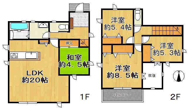 Parking for 2 carsImmediate move-in availableLiving-dining area over 20 tatami matsSouth-facingSystem kitchenGood sunlight exposureQuiet residential areaCorner lotRegularly shaped lot2 storiesSouth-facing balconyIH cooking heaterAll-electric