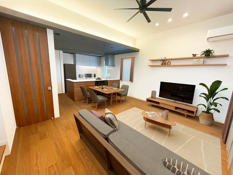 This custom-built home, completed in 2022, features a solar power system and offers a spacious living area. Located in a quiet neighborhood, it is just 21 minutes from Fujinoki Station and is designed for modern family living.
