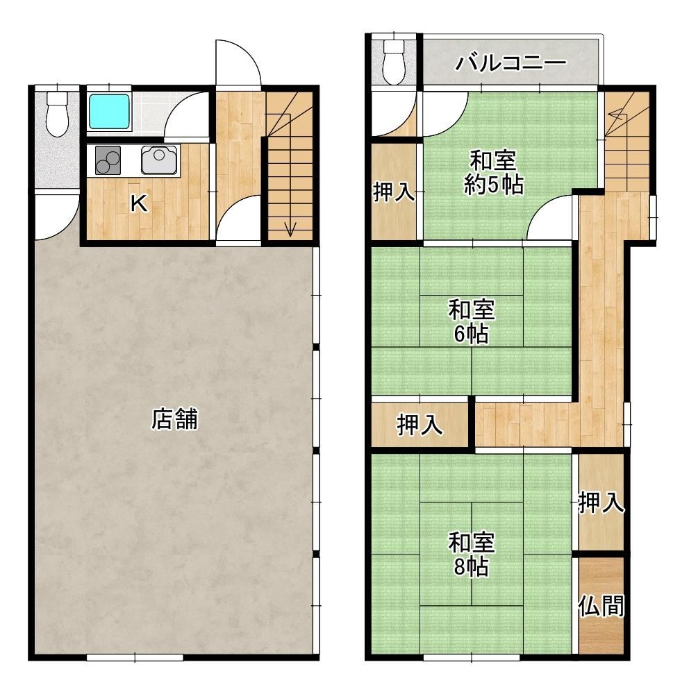 130万円3K Detached House with Storefront in Aioi