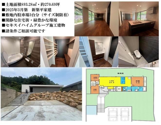 This newly built 3LDK house by Sekisui Heim is nestled in a quiet, green residential area. With a spacious land area of 270 tsubo, it offers ample room for outdoor activities. The property is perfect for families seeking a peaceful retreat while still being accessible to urban conveniences.