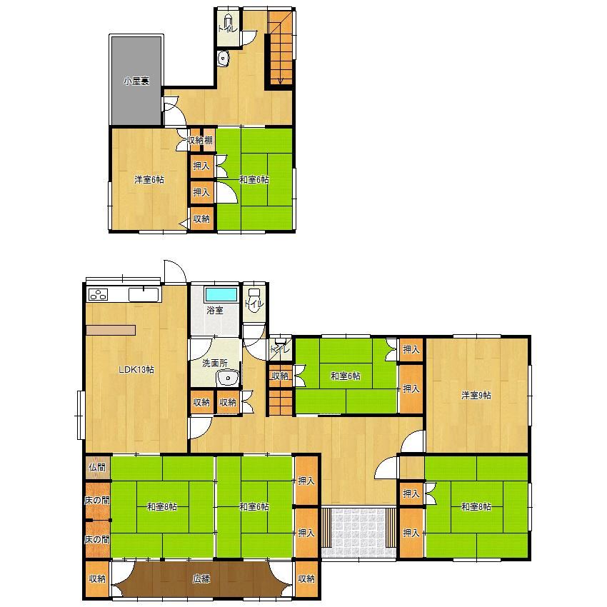 Parking for 3 or more carsLand over 100 tsuboQuiet residential areaJapanese roomTwo toilets2 storiesSouth gardenWindow in bathroomAll rooms over 6 tatami