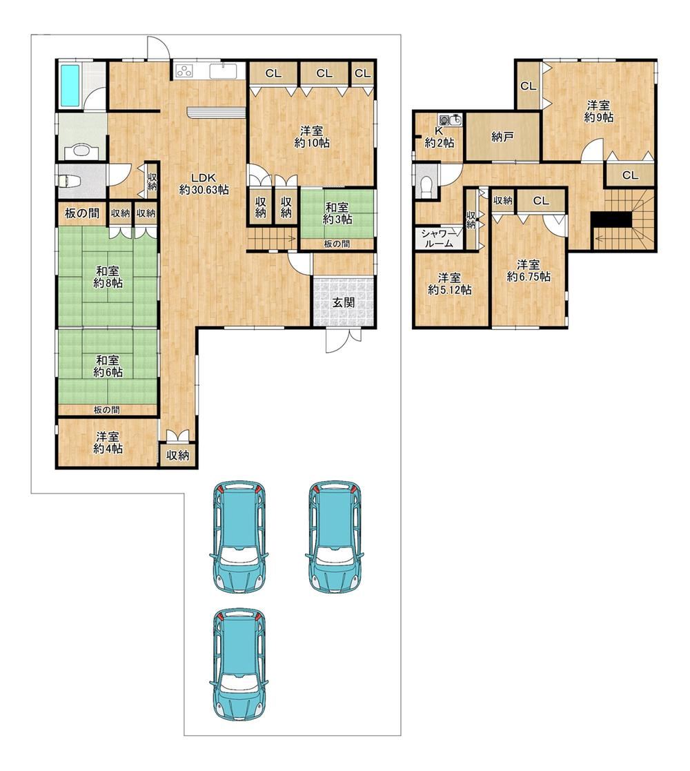 Parking for 3 or more carsTwo or more train lines accessibleLDK over 20 tatamiLand over 100 tsuboClose to city centerSouth-facingGood sunlightQuiet residential areaJapanese-style roomTwo toilets2 storiesWarm water washing toiletWindow in bathroomGreen residential areaGood ventilationCity gasFlat landStorage room