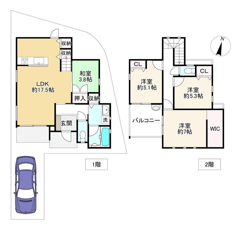 This contemporary 4LDK house, built in 2017, offers 97.5 sqm of living space on a 106.24 sqm lot. Located just a 2-minute walk from Konoyari stop, it features a modern kitchen, spacious living areas, and two bathrooms. The property is situated in a quiet residential area, making it ideal for families seeking comfort and convenience.
