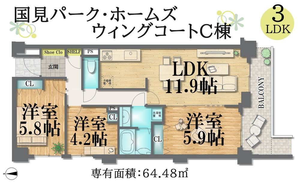 This budget-friendly apartment offers a comfortable living space at an affordable price, with parking available. Located just 13 minutes from Kunimi Station, it features a modern 3LDK layout of 64.48 sqm, providing ample room for a family. Enjoy the benefits of a quiet neighborhood while remaining close to the city.