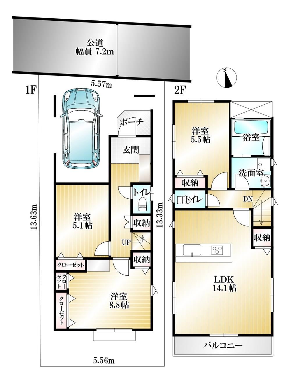 Building confirmation inspection certificateSupermarket within 10 minutes walkClose to city centerSystem kitchenBathroom ventilationGood sunlight exposureStorage in all roomsFlat walk to the stationRoad over 6m wideShower-equipped washbasinOpen kitchenTwo toiletsBathroom over 1 tsuboTwo storiesSouth-facing balconyDouble-glazed windowsHeated toilet seatWindow in bathroomTV intercomGreen residential areaFlooring in all roomsFlat landBuilt-in garage