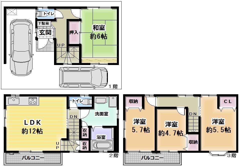 Parking for two carsSupermarket within 10 minutes on footInterior renovationSystem kitchenStorage in all roomsJapanese style roomTwo toiletsBalcony on multiple sidesHeated toilet seatWindow in bathroomTV intercomIH cooking heaterElementary school within 10 minutes on footAll electric
