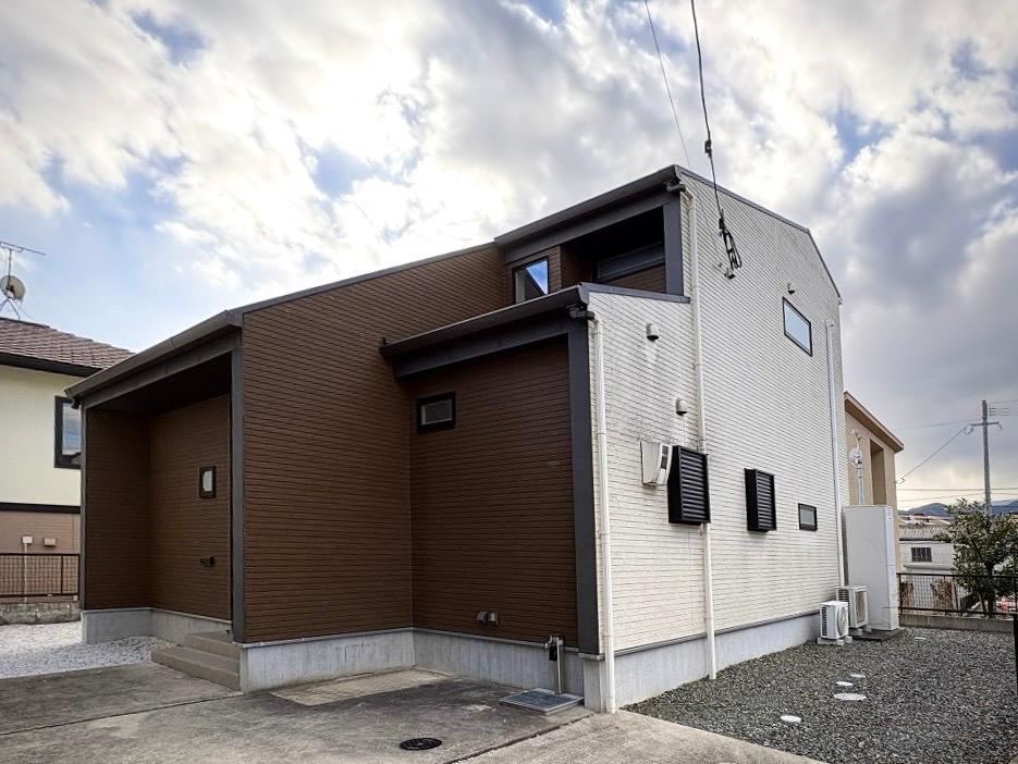 This stylish 4LDK designer home, completed in 2018, is just a 7-minute walk from Kiyama Station. Located in a serene neighborhood, it features modern amenities including a system kitchen and energy-efficient water heater, ensuring a comfortable lifestyle for families.